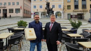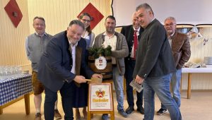 (v.l.): Stellvertretender Almenrausch-Vorsitzender Norbert Pfeffer, das Schaustellerpaar Schneider, Festwirt Daniel Feuerer, Bauhofleiter Volker Keil, Bürgermeister ...