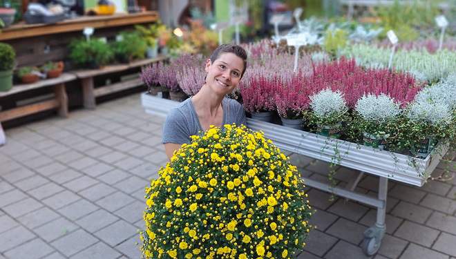BURGLENGENFELD (lz). „Floristik und mehr“ präsentiert auch in diesem Jahr frische herbstliche Gebinde und Gestecke, auch für die Allerheiligen-Grabgestaltung. Eine große Auswahl an Pflanzen und Blumen für Herbstdekorationen in Töpfen oder auf den Beeten zeigt Stefanie Feuerer, die mit ihrem Mann das Floristikunternehmen in Pottenstetten mit viel Liebe zu Pflanzen und Blumen betreibt und eine Menge an Service für die Kunden bereithält.