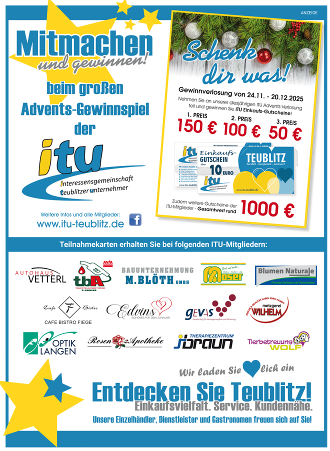 Beim großen Gewinnspiel der ITU Teublitz vom 24.11.-20.12.2025