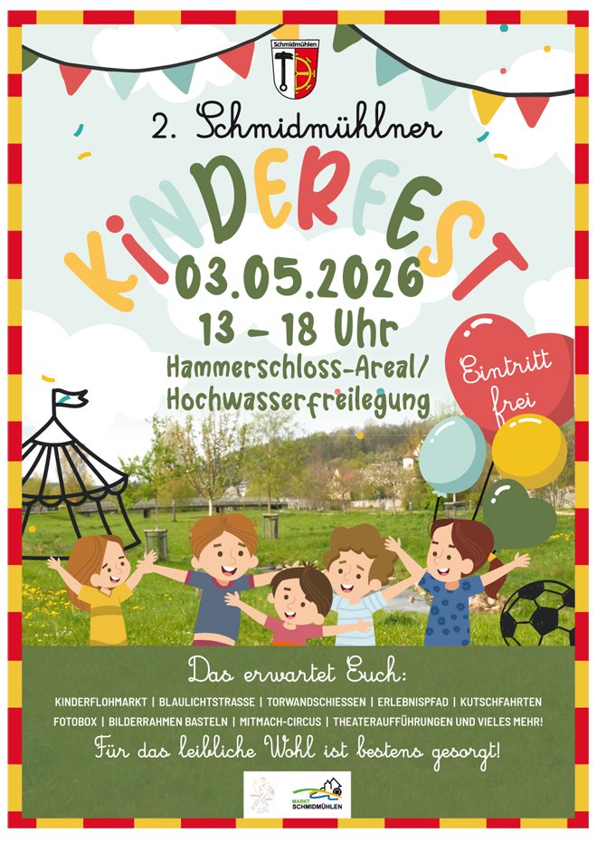 SCHMIDMÜHLEN (sr). Am Sonntag, den 3. Mai 2026 findet das zweite Kinderfest statt, das nach der erfolgreichen Premiere vor zwei Jahren erneut vom Markt Schmidmühlen in Kooperation mit dem Heimat- und Kulturverein organisiert wird. Die Vorbereitungen laufen bereits auf Hochtouren, und zahlreiche Vereine haben ihre Teilnahme zugesagt.