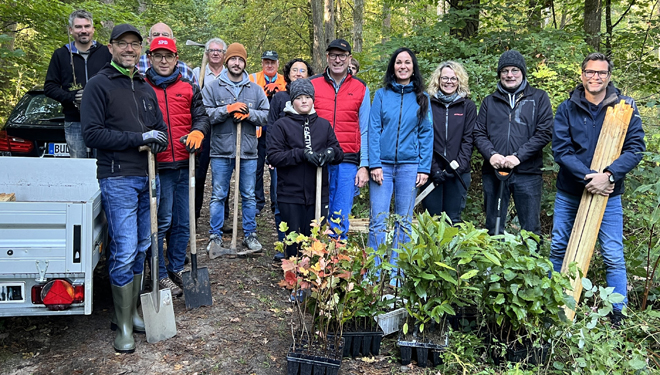 BURGLENGENFELD (sr). Exakt 104 Bäume haben Mitglieder des SPD-Ortsvereins zusammen mit Baumpaten am Tag der Deutschen Einheit im Raffa gepflanzt. „Wir wollen mit dieser Aktion das Bewusstsein für Naturschutz und Klimaresilienz schärfen“, sagt Bürgermeisterkandidat Martin Antretter.