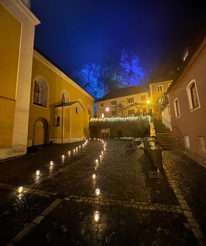 Am 13. Dezember leuchten wieder die Lichter auf dem Kirchenplatz in Kallmünz, den Gassen und in der Pfarrkirche, Illuminationen tragen zum festlichen Bild bei und LUZIA zieht mit dem Lichterkranz durch die Gassen von Kallmünz hinauf zur Spittelbergkirche, wo unter der Leitung von Graham Buckland um 19 Uhr ein Chor-Konzert stattfindet.
