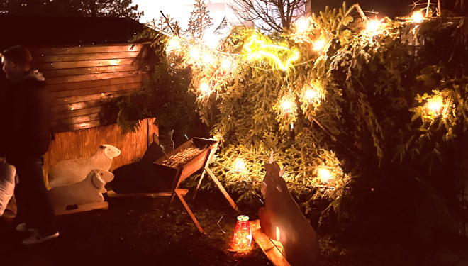 Der Ausklang des Abends fand im Schein von Feuerschalen im Garten des St.-Clemens-Hauses statt, wo auch eine liebevoll gestaltete Krippennachbildung zu sehen war. Für das leibliche Wohl der Besucher war bestens gesorgt. Aufgrund der großen Beteiligung und der durchweg positiven Resonanz plant die Kolpingsfamilie, das neue Konzept rund um die Pfarrkirche St. Leonhard im kommenden Jahr zu wiederholen..