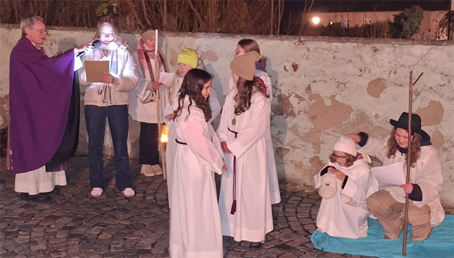 MAXHÜTTE-HAIDHOF (sr). Unter dem Leitgedanken „Unterwegs zum Heiligen Abend“ machte sich am Samstagabend, den 20. Dezember, eine große Schar von Gläubigen der Pfarrei St. Leonhard gemeinsam auf den Weg. Begleitet wurden sie von der Geschichte des kleinen Hirtenjungen Simon, der sich auf die Suche nach seinem verlorenen Schäfchen begab.