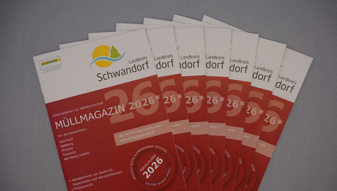SCHWANDORF (sr). In den nächsten Tagen erhalten alle Haushalte im Landkreis Schwandorf wieder das neue Müllmagazin. Rechtzeitig zum Jahreswechsel erhalten damit alle Landkreisbewohner eine wichtige und informative Post vom Landratsamt Schwandorf frei Haus geliefert.