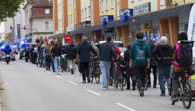 REGENSBURG (sr). Mit einer Laufdemo und anschließendem buntem Programm setzten sich die Regensburger Klimagruppen am 11. Oktober ein für ein Regensburg, das öffentlichen Nahverkehr und Lebensqualität für die Bewohner*innen priorisiert und eine nachhaltige Verkehrswende umsetzt.