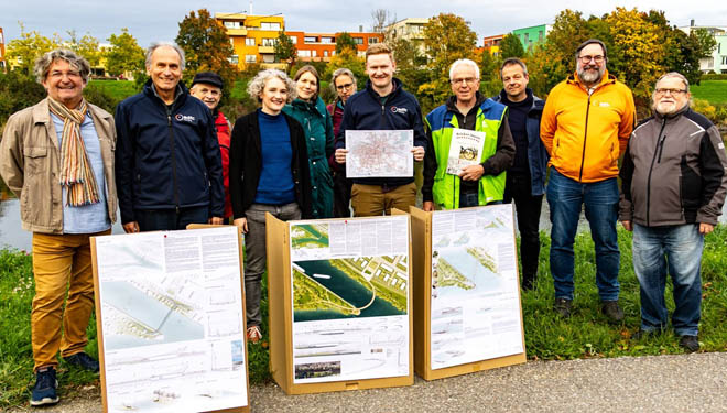 REGENSBURG (sr). Am 8. Oktober haben sich abends Vertreterinnen und Vertreter aus Politik, Verbänden und Kultur am Grieser Spitz getroffen, um ihre Positionen zum geplanten Holzgartensteg zu verdeutlichen. Bei dem Pressetermin standen sowohl die Chancen und die Bedeutung des Stegs im Mittelpunkt als auch die Präsentation der drei Siegerentwürfe aus dem vorangegangenen Planungswettbewerb.