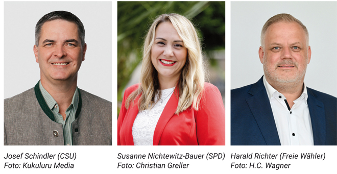 REGENSTAUF (sr). In Regenstauf steht bei der Kommunalwahl 2026 eine richtungsweisende Entscheidung an: Wer übernimmt künftig Verantwortung im Rathaus und gestaltet die Zukunft des Marktes? Mit Josef Schindler (CSU), Susanne Nichtewitz-Bauer (SPD) und Harald Richter (Freie Wähler) bewerben sich drei Kandidierende um das Bürgermeisteramt. LOKAL stellte acht identische Fragen, um einen direkten und gut vergleichbaren Überblick über die Positionen, Schwerpunkte und Zielsetzungen zu ermöglichen. Nachfolgend geben die kompakten Antworten einen Einblick in die Prioritäten der Kandidierenden und zeigen, wie sie die kommenden Jahren gestalten möchten.