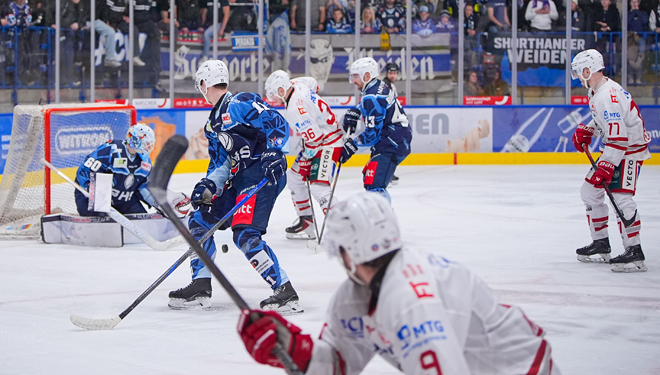Dabei verlief die Begegnung lange auf Augenhöhe, doch im Schlussabschnitt zogen die Hausherren vor 2560 Fans in der Hans-Schröpf-Arena zwischenzeitlich auf 5:1 davon, ehe die Rot-Weißen zur Aufholjagd bliesen, erst auf 3:5 verkürzten und dann gar auf den Anschlusstreffer drängten – letztlich jedoch erfolglos.