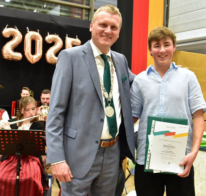 Mit der Nationalhymne und dem feierlichen Aufziehen der Deutschlandfahne für Bastian Böhm fand ein Abend seinen würdigen Abschluss, der eindrucksvoll zeigte, wie stark und vielfältig der Sport in Maxhütte-Haidhof ist.