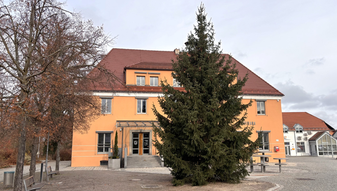 TEUBLITZ (sr). Auch in diesem Jahr steht in der Stadtmitte am Marktplatz wieder ein Christbaum direkt vor dem Rathaus. Rechtzeitig vor der Adventszeit wurde dieser am Dienstagvormittag durch Beschäftigte des städtischen Bauhofs aufgestellt. Unterstützung erhielten sie dabei erneut von der Teublitzer Baufirma Blöth, die mit ihrem LKW-Kranwagen tatkräftig mithalf.