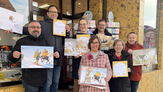 Auf insgesamt zwölf Bildkarten, die in den Schaufenstern teilnehmender Geschäfte ausgestellt sind, können kleine und große Spaziergängerinnen und Spaziergänger eine winterliche Geschichte rund um die Kuh Lieselotte erleben. Jede Station zeigt ein Bild mit dem passenden Text – wer der nummerierten Reihenfolge folgt, erhält am Ende einen kompletten kleinen Geschichtenrundgang durch die Burglengenfelder Altstadt.
