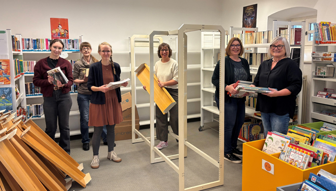 In den kommenden Wochen verwandelt sich die Bibliothek in eine Großbaustelle – jedes Regal wird verrückt, jedes Buch bekommt einen neuen Platz, Möbel und Technik werden zwischengelagert. „Das ist eine echte Mammutaufgabe“, sagt Kerstin Schwelle, Leiterin der Stadtbibliothek. „Unsere Bibliothek erstreckt sich über drei Stockwerke mit vielen Treppen – da sind Muskelkraft, Organisationstalent und Teamgeist gefragt.“