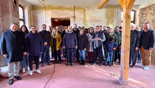 Wie schon bei den bisherigen Empfängen begann der Nachmittag mit einer Führung durch das Industriedenkmal „D‘Schleif“ in Münchshofen. Ortsheimatpfleger Matthias Haberl führte die Gruppe über das Gelände des ehemaligen Glasschleif- und Polierwerks an der Naab und gab spannende Einblicke in die Geschichte des traditionsreichen Industriedenkmals aus dem 19. Jahrhundert.