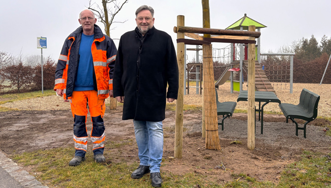 Bürgermeister Thomas Beer und Vertreter des städtischen Bauhofs überzeugten sich vor Ort von den Neuerungen. Sie zeigten sich erfreut über die gelungene Umsetzung des Bürgerwunsches, der zur weiteren Aufwertung des Spielplatzes beiträgt und das Engagement der Bürgerschaft unterstreicht.