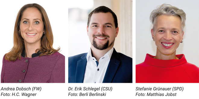 ZEITLARN (sr). In Zeitlarn stellen sich Amtsinhaberin Andrea Dobsch (Freie Wähler), Dr. Erik Schlegel (CSU) und Stefanie Grünauer (SPD) der Wahl um das Bürgermeisteramt. Im LOKAL-Kurzinterview beantworten alle drei identische Fragen und geben Einblick in ihre Ziele und Schwerpunkte für die kommenden Jahre. Im Mittelpunkt stehen dabei Themen wie bezahlbarer Wohnraum, die Sanierung und Weiterentwicklung der Infrastruktur, soziale Angebote für alle Generationen sowie die Zukunft von Energie, Ehrenamt und Naherholung in der Gemeinde.