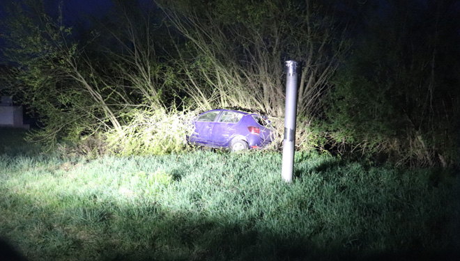Am Mittwoch gegen 20:00 Uhr meldete ein Zeuge in der Nähe des Schwandorfer Ortsteils Stegen einen verunfallten Pkw. Der Zeuge konnte zunächst beobachten, wie an ihm ein violetter Dacia mit tschechischem Kennzeichen mit überhöhter Geschwindigkeit vorbeifuhr. Anschließend kam das Auto von der Fahrbahn ab und landete in einem Gehölz. Aus dem Auto stiegen zwei Personen aus, die sich aus dem Staub machen wollten, aber der anfahrenden Streife sozusagen in die Arme liefen.