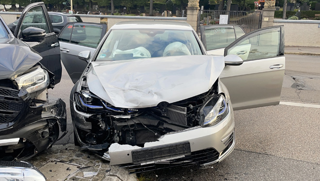 Am Dienstag gegen 07:45 Uhr wollte eine 18-jährige Rumänin aus Schwandorf in Schwandorf von der Wackersdorfer Straße in die Hoher-Bogen-Straße abbiegen. Dabei übersah die Schülerin mit ihrem VW Golf einen entgegenkommenden Mercedes, an dessen Steuer 63-jähriger Albaner saß. In Folge der Unachtsamkeit der Golf-Fahrerin kam es zu einem heftigen Zusammenstoß, bei dem der selbständige Mercedes-Fahrer leicht verletzt wurde. Beide Autos waren nicht mehr fahrbereit und mußten abgeschleppt werden. Insgesamt entstand ein Sachschaden in Höhe von rund 30000 EURO.