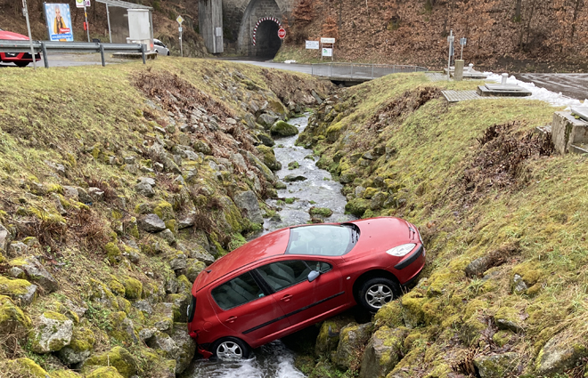 Pkw landet wegen nicht angezogener Handbremse im Bach