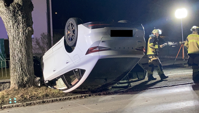 Einen Verkehrsunfall der besonderen Art mussten am Samstag Abend gegen 19:30 Uhr die Beamten der Polizeiinspektion Tirschenreuth aufnehmen. Ein 66jähriger Mann aus dem Landkreis Tirschenreuth fuhr mit seinem Pkw Skoda die St.-Peter-Straße vom Krankenhaus Richtung B15, als selbiger plötzlichen einen Hustenanfall erlitt. Dieser war so heftig, dass der Fahrzeuglenker die Kontrolle über sein Auto verlor, von der Fahrbahn abkam und gegen einen Baum stieß. Hierbei kippte das Fahrzeug um und kam auf dem Dach zum Liegen. Der Mann konnte sich jedoch selbst aus seinem Pkw befreien und die Rettung verständigen. Der Verunfallte wurde vom Rettungsdienst mit leichten Verletzungen zur Beobachtung in ein Krankenhaus gebracht. Die Freiwillige Feuerwehr Tirschenreuth war mit 25 Kräften zur Bergung und Verkehrslenkung am Unfallort. Da es sich bei dem verunfallen Auto um ein Elektrofahrzeug handelte, wurde von den Spezialisten der Feuerwehr zudem sofort die Stromzufuhr der Batterie abgeklemmt. Am Pkw des 66jährigen entstand vermutlich wirtschaftlicher Totalschaden, auch der Baum wurde in Mitleidenschaft gezogen. Es wird von einem Gesamtschaden von ca. 35.000EUR ausgegangen.