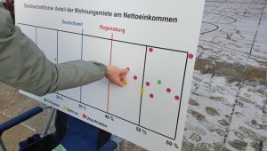 REGENSBURG (sr). Mit einer symbolischen 30-Quadratmeter-Wohnung auf dem Neupfarrplatz und einem interaktiven Format zur persönlichen Mietbelastung haben die Regensburger Grünen …