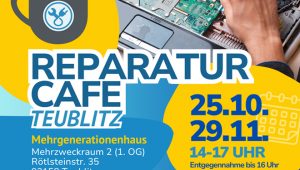 TEUBLITZ (sr). Das Reparatur Café öffnet am Samstag, den 25. Oktober 2025, von 14 bis 17 Uhr wieder seine Türen …