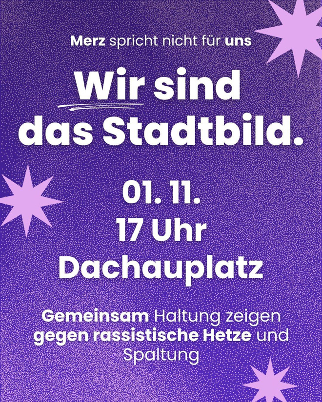 REGENSBURG (sr). Unter dem Motto „Wir sind das Stadtbild“ demonstrieren Bürger:innen, Vereine, Initiativen und Organisationen anlässlich der Aussagen des Bundeskanzlers Friedrich März über das Stadtbild gemeinsam gegen rassistische Aussagen und rechte Rhetorik in Politik und Gesellschaft.
